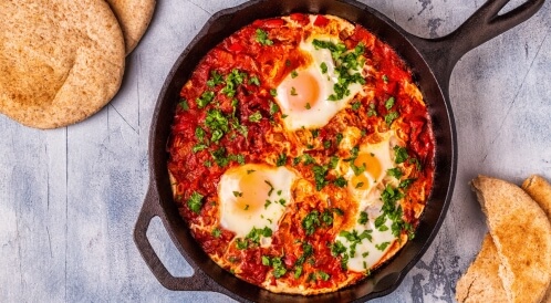 Por ser prática e rápida de preparar, a Shakshuka é ideal para cafés da manhã nutritivos ou jantares leves.